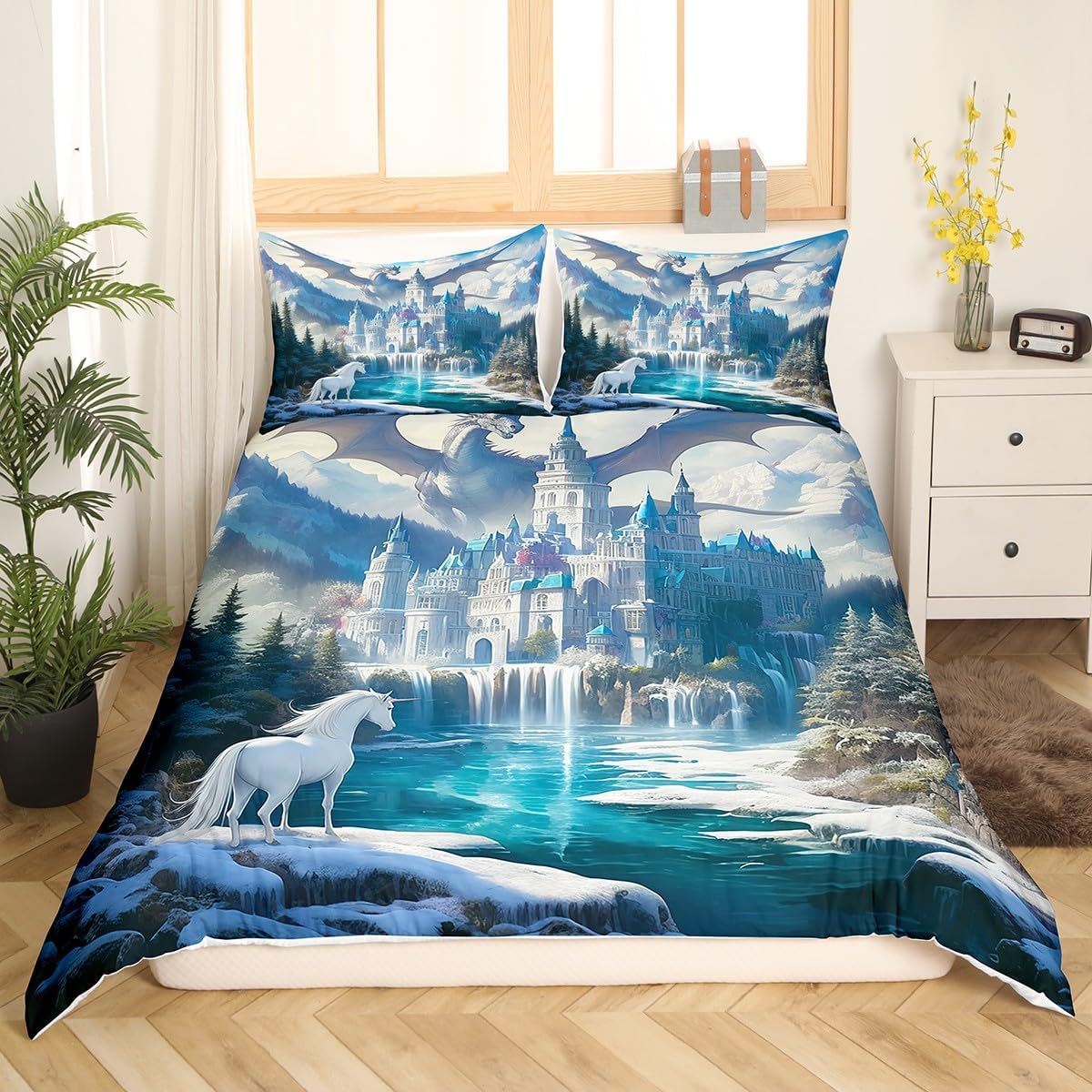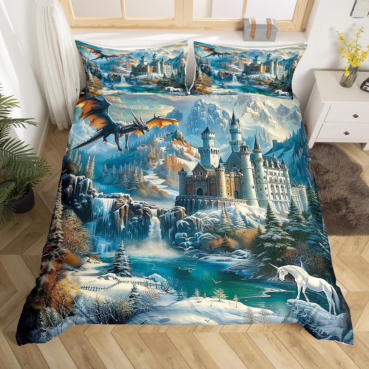 Package Include: Duvet Cover and Pillowcase. High quality Duvet Cover 3D Pattern Bedding Set, simply decorating your rooms any time you want, bringing you fresh feel for year round use. Size Information: Twin size 2pcs duvet cover set: 1 Duvet Cover 68" x 90", 1 pillowcase 20" x 30". Without Comforter Full size 3pcs duvet cover set: 1 Duvet Cover 80" x 90", 2 pillowcases 20" x 30". Without Comforter Queen size 3pcs duvet cover set: 1 Duvet Cover 90" x 90", 2 pillowcases 20" x 30". Without Comforter King size 3pcs duvet cover set: 1 Duvet Cover 104" x 90", 2 pillowcases 20" x 36". Without Comforter Personalize your bedroom: Beautiful design and colorful print, makes your bedroom unique and brings you a wonderful dream. Washing instructions: Machine wash separately in cold water,hang dry, do not bleach. Occasion: The cute soft duvet cover bedding sets designed for Children ,Adult, Men, Women, Teens. This duvet cover set is also suitable for full seasons, Spring, Summer, Autumn and Winter. More Decor: Search our store to get more christmas theme, new year theme, autumn fall theme, any holiday theme, modern abstract, farmhouse rustic theme, simple pattern, garden flowers etc. home decoration, Warm Tips: 1. Please allow 1-3cm error due to manual measurement. 2. Actual color may vary from the color on your screen due to monitor color restrictions.